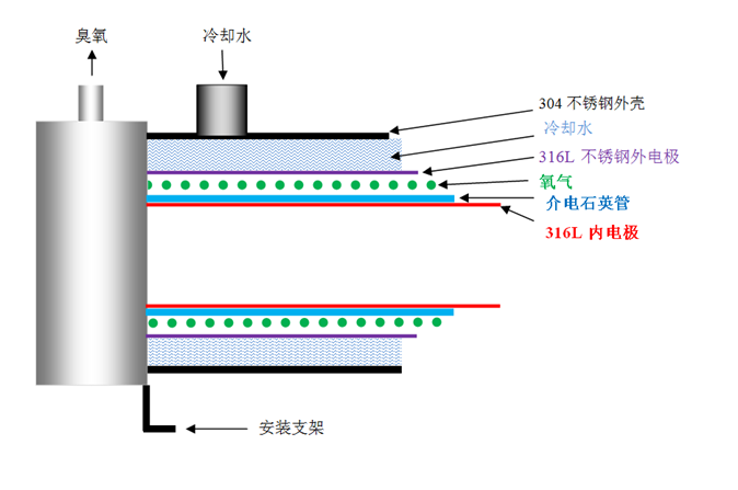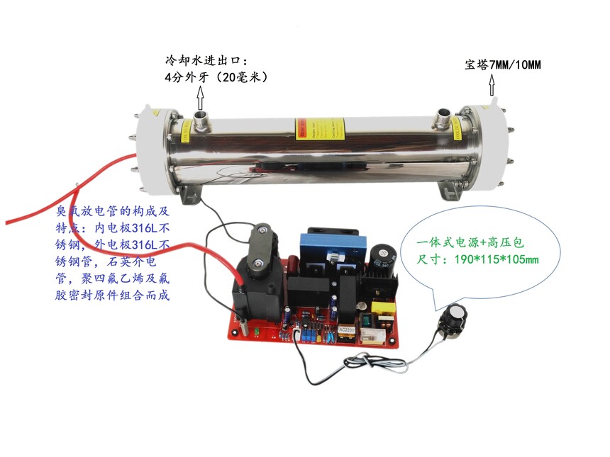 水冷30G/H臭氧发生器配件(臭氧高压电源+臭氧管)1.2厚304不锈钢外壳 1.2厚316L不锈钢内电极 臭氧浓度高达80% ![]()